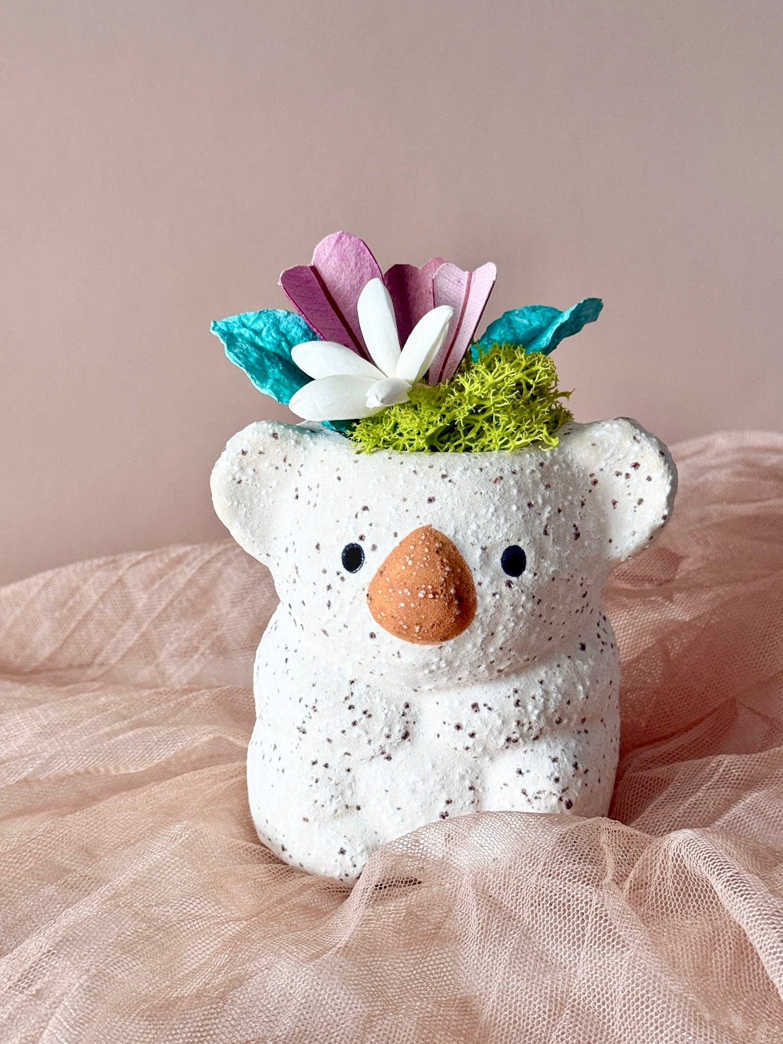 A little bundle of handmade flowers to brighten up someone's day in a cute koala bear vase! Perfect for a mid week perk me up! Each set comes with a diffuser of your choice and a floral arrangement.